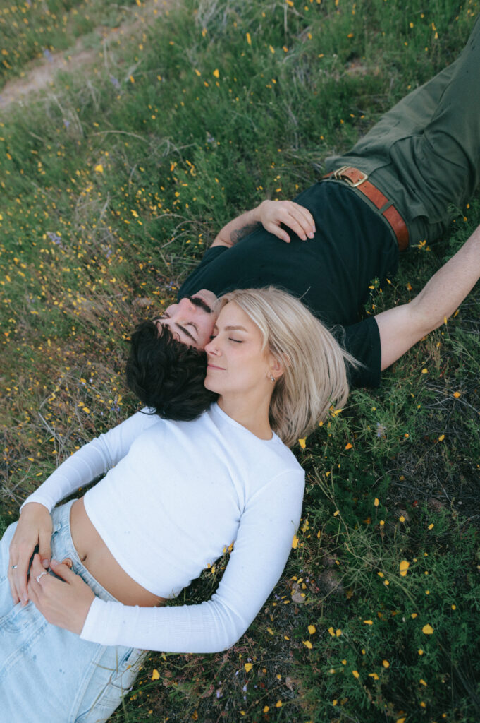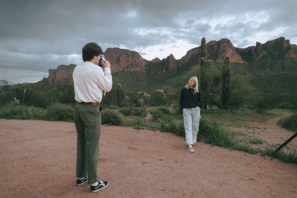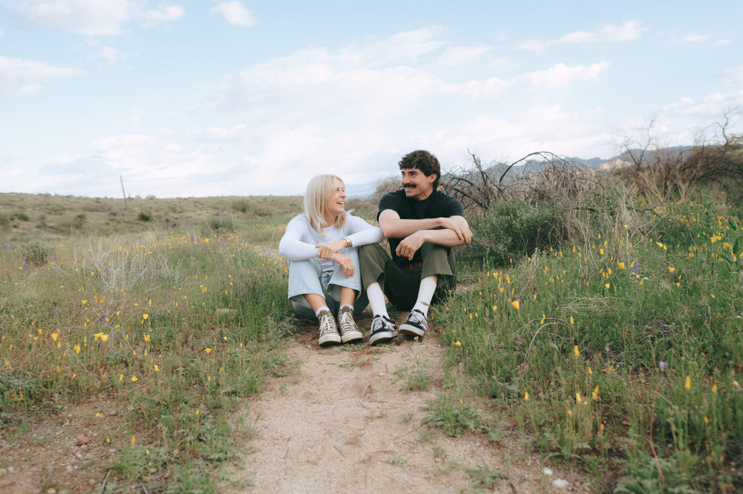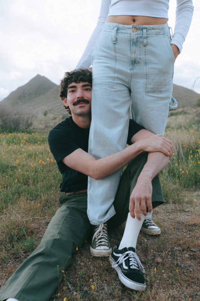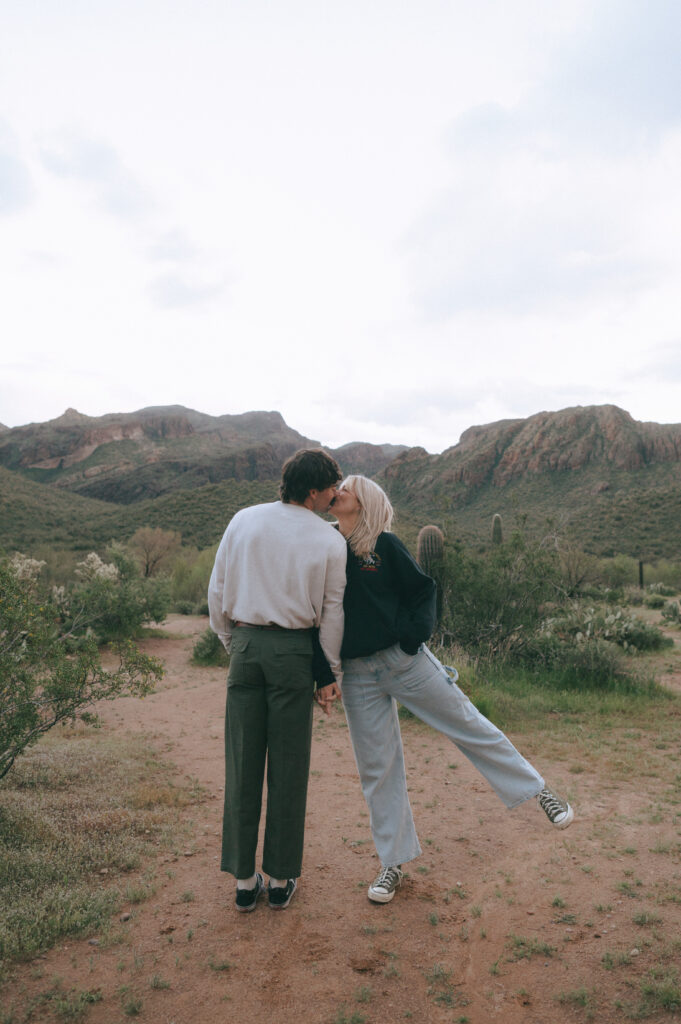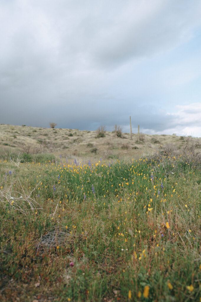 If you are wanting a different type of scenery as far photos go within’ the valley, Bush Highway is beautiful. Bush Highway is all along the Salt River and Saguaro Lake, it’s truly just a beautiful drive if you are wanting something to do on a Sunday evening. This Bush Highway couples session with Charlotte and Frankie was MAGICAL. It was the middle of Spring and all the wildflowers were blooming, it was so pretty! We had two locations planned out for their session, the wildflowers and this little spot I found along the highway that gave a pretty awesome view of some mountains right along the Salt River.